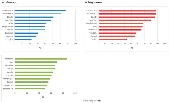 Ponzo, V.; Rosato, R.; Scigliano, M.C.; Onida, M.; Cossai, S.; De Vecchi, M.; Devecchi, A.; Goitre, I.; Favaro, E.; Merlo, F.D.; et al. Comparison of the Accuracy, Completeness, Reproducibility, and Consistency of Different AI Chatbots in Providing Nutritional Advice: An Exploratory Study. J. Clin. Med. 2024, 13, 7810. https://doi.org/10.3390/jcm13247810