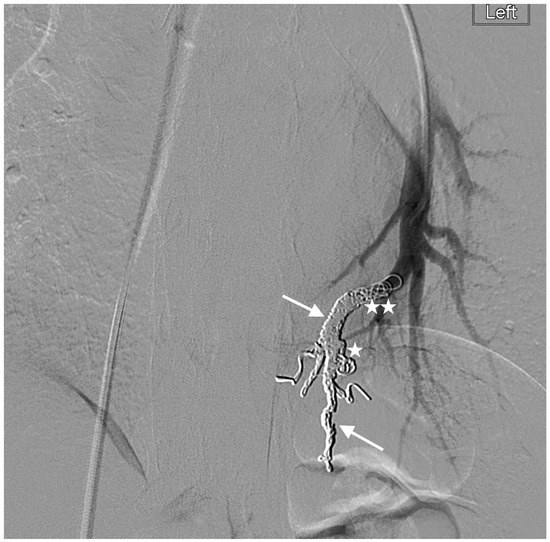 - Hayashi, S.; Baba, Y.; Senokuchi, T.; Nakajo, M. Efficacy of venous sac embolization for pulmonary arteriovenous malformations: Comparison with feeding artery embolization. J. Vasc. Interv. Radiol. JVIR 2012, 23, 1566–1577, quiz p. 1581. [Google Scholar] [CrossRef] [PubMed]