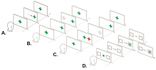 - Herweg, N.A.; Weber, B.; Kasparbauer, A.; Meyhöfer, I.; Steffens, M.; Smyrnis, N.; Ettinger, U. Functional magnetic resonance imaging of sensorimotor transformations in saccades and antisaccades. Neuroimage 2014, 102, 848–860. [Google Scholar] [CrossRef]