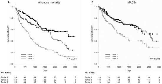 | Tertile 3 | 2.12 (1.36–3.32) | 0.001 | 1.79 (1.11–2.86) | 0.016 | 1.90 (1.15–3.13) | 0.012 |