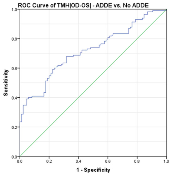 3.1. Assessment of TMH|OD-OS| Cut-Off Value to Differentiate between ADDE and No ADDE Participants