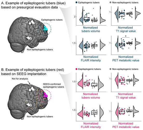 - Park, D.K.; Kim, W.; Thornburg, O.S.; McBrian, D.K.; McKhann, G.M.; Feldstein, N.A.; Maddocks, A.B.; Gonzalez, E.; Shen, M.Y.; Akman, C.; et al. Convolutional neural network-aided tuber segmentation in tuberous sclerosis complex patients correlates with electroencephalogram. Epilepsia 2022, 63, 1530–1541. [Google Scholar] [CrossRef] [PubMed]