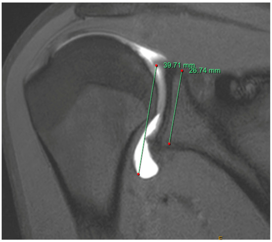 - Gyftopoulos, S.; Hasan, S.; Bencardino, J.; Mayo, J.; Nayyar, S.; Babb, J.; Jazrawi, L. Diagnostic accuracy of MRI in the measurement of glenoid bone loss. Am. J. Roentgenol. 2012, 199, 873–878. [Google Scholar] [CrossRef]