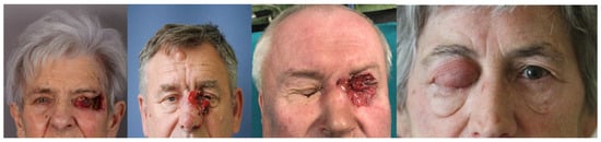 - Tyers, A.G. Orbital exenteration for invasive skin tumours. Eye 2006, 20, 1165–1170. [Google Scholar] [CrossRef] [PubMed]
