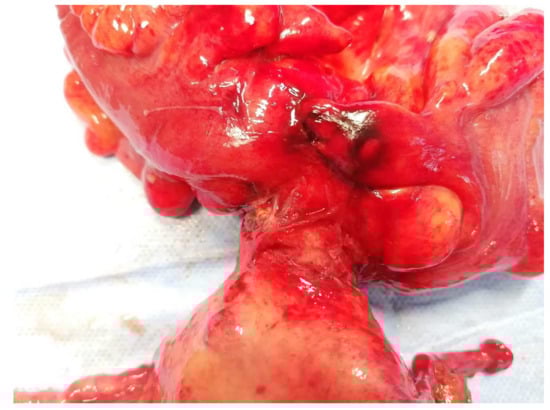 - Sentilhes, L.; Foulatier, O.; Verspyck, E.; Roman, H.; Scotté, M.; Marpeau, L. Colouterine fistula complicating diverticulitis: A case report and review of the literature. Eur. J. Obstet. Gynecol. Reprod. Biol. 2003, 110, 107–110. [Google Scholar] [CrossRef] [PubMed]