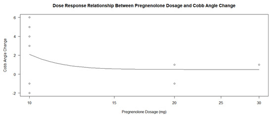Dose–response relationship between pregnenolone dosage and cobb angle change treatment group only.