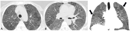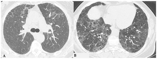 Figure 2). Radiological features of HP are influenced by the histopathological stage of the disease at the time of diagnosis. According to international guidelines about HRCT features, HP (both the fibrotic and non-fibrotic forms) can be classified into “Typical HP”, “Compatible with HP” and “Indeterminate for HP”, each presenting typical, compatible or “not-specific” radiological and pathological elements, respectively. HRCT is a pivotal examination for diagnostic confirmation after a comprehensive clinical assessment, functional tests and BAL, with or without transbronchial biopsy (if deemed necessary by the clinician). It is also essential for the ongoing diagnostic process in the follow-up of patients with confirmed diagnoses through a MDT approach, providing information on therapeutic response and defining the possible progression of damage toward fibrotic transition as additional prognostic information useful for evaluating a different therapeutic approach (antifibrotic therapy). The distinctive feature of fibrotic HP is the coexistence of pulmonary fibrosis, often with signs of bronchial obstruction. In fibrotic HP, fibrosis more frequently appears as irregular and coarse reticulation associated with architectural distortion and septal thickening, which may be accompanied by bronchiectasis and bronchioloectasis that is more evident in ground-glass areas (