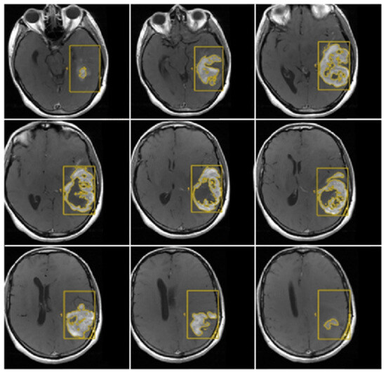 NV was evaluated manually on preoperative 2D axial CE-T1w images, including only the necrotic area inside the tumor (Figure 7).