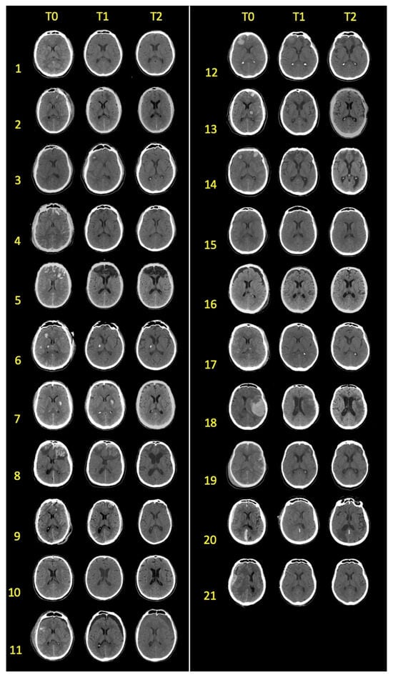 - Bigler, E.D.; Ryser, D.K.; Gandhi, P.; Kimball, J.; Wilde, E.A. Day-of-injury computerized tomography, rehabilitation status, and development of cerebral atrophy in persons with traumatic brain injury. Am. J. Phys. Med. Rehabil. 2006, 85, 793–806. [Google Scholar] [CrossRef] [PubMed]
