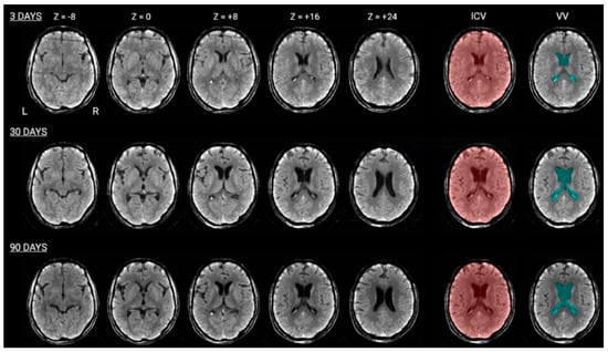 APA StyleCampana, S., Cecchetti, L., Venturi, M., Buemi, F., Foti, C., Cerasa, A., Vicario, C. M., Carboncini, M. C., & Tomaiuolo, F. (2024). Evolution of Severe Closed Head Injury: Assessing Ventricular Volume and Behavioral Measures at 30 and 90 Days Post-Injury. Journal of Clinical Medicine, 13(3), 874. https://doi.org/10.3390/jcm13030874