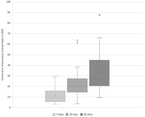 Chicago/Turabian StyleCampana, Serena, Luca Cecchetti, Martina Venturi, Francesco Buemi, Cristina Foti, Antonio Cerasa, Carmelo Mario Vicario, Maria Chiara Carboncini, and Francesco Tomaiuolo. 2024. "Evolution of Severe Closed Head Injury: Assessing Ventricular Volume and Behavioral Measures at 30 and 90 Days Post-Injury" Journal of Clinical Medicine 13, no. 3: 874. https://doi.org/10.3390/jcm13030874