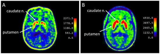 - Darcourt, J.; Schiazza, A.; Sapin, N.; Dufour, M.; Ouvrier, M.J.; Benisvy, D.; Fontana, X.; Koulibaly, P.M. 18F-FDOPA PET for the Diagnosis of Parkinsonian Syndromes. Q. J. Nucl. Med. Mol. Imaging 2014, 58, 355–365. [Google Scholar] [PubMed]