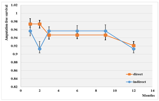 - Lejay, A.; Georg, Y.; Tartaglia, E.; Gaertner, S.; Geny, B.; Thaveau, F.; Chakfe, N. Long-term outcomes of direct and indirect below-the-knee open revascularization based on the angiosome concept in diabetic patients with critical limb ischemia. Ann. Vasc. Surg. 2014, 28, 983–989. [Google Scholar] [CrossRef]