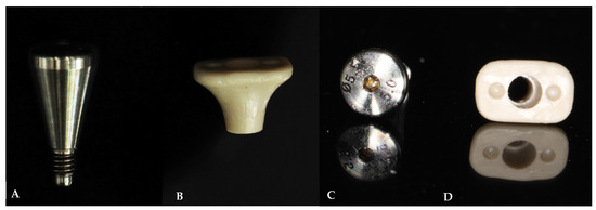 - Proussaefs, P. Custom CAD-CAM healing abutment and impression coping milled from a poly(methyl methacrylate) block and bonded to a titanium insert. J. Prosthet. Dent. 2016, 116, 657–662. [Google Scholar] [CrossRef]