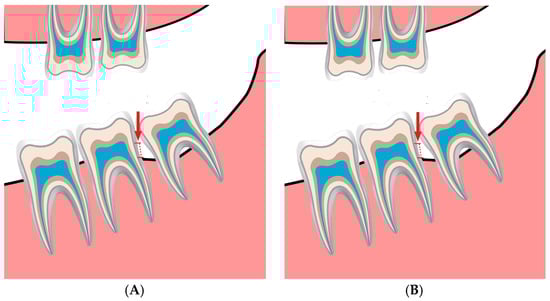 - Tai, S.; Zhou, Y.; Pathak, J.L.; Piao, Z.; Zhou, L. The association of mandibular third molar impaction with the dental and periodontal lesions in the adjacent second molars. J. Periodontol. 2021, 92, 1392–1401. [Google Scholar] [CrossRef]