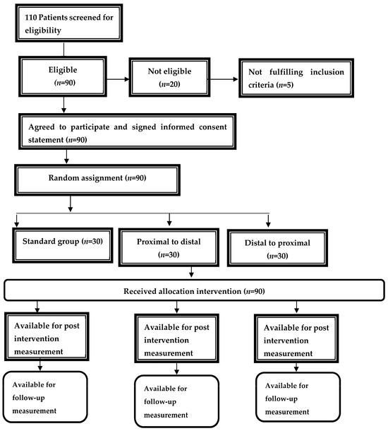 The study incorporated three groups of participants who were subjected to varied neurodynamic exercise sequences. Participants were randomly assigned to one of the three groups: