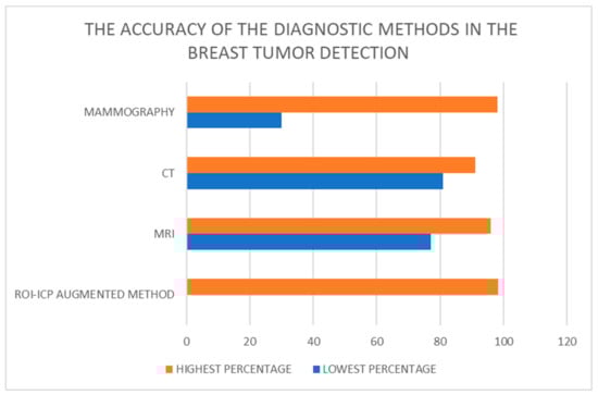 - Berg, W.A.; Gutierrez, L.; NessAiver, M.S.; Carter, W.B.; Bhargavan, M.; Lewis, R.S.; Ioffe, O.B. Diagnostic Accuracy of Mammography, Clinical Examination, US, and MR Imaging in Preoperative Assessment of Breast Cancer. Radiology 2004, 233, 830–849. [Google Scholar] [CrossRef] [PubMed]