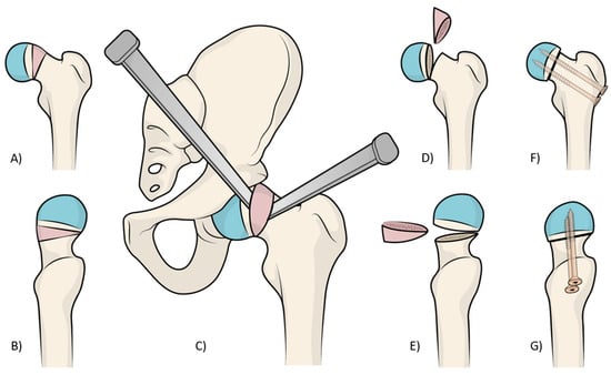 - Fish, J.B. Cuneiform osteotomy of the femoral neck in the treatment of slipped capital femoral epiphysis. J. Bone Jt. Surg. Am. 1984, 66, 1153–1168. [Google Scholar] [CrossRef]