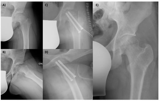 - Valenza, W.; Soni, J.; Przysiada, L.; Faggion, H. Avascular Necrosis After Modified Dunn Surgery for the Treatment of Slipped Capital Femoral Epiphysis. Rev. Bras. Ortop. 2022, 57, 807–814. [Google Scholar] [CrossRef]