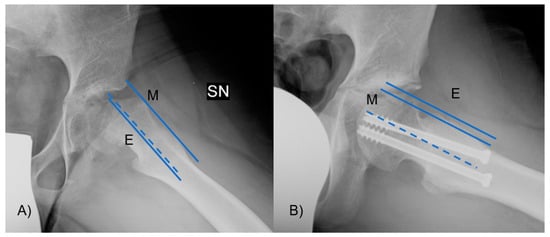 - Faldini, C.; De Fine, M.; Di Martino, A.; Fabbri, D.; Borghi, R.; Pungetti, C.; Traina, F. Anterior Minimally Invasive Subcapital Osteotomy without Hip Dislocation for Slipped Capital Femoral Epiphysis. Int. Orthop. 2016, 40, 1615–1623. [Google Scholar] [CrossRef] [PubMed]
