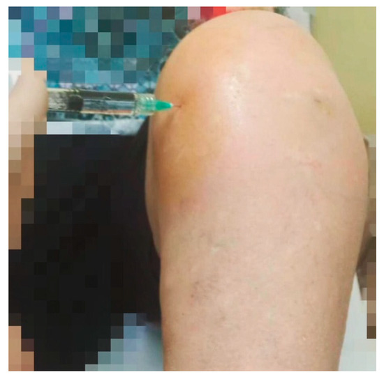 15]. At T1 and T2, the Roles and Maudsley Score (RMS) was also collected for each patient. The RMS is a subjective patient assessment of pain, and it was used as an instrument to evaluate the satisfaction with the treatment in terms of effectiveness, discomfort related to the execution and the procedure’s side effects. At T1 and T2, for each patient, the examining physiatrist filled out a diary with all the local effects reported after the injections. The side effects were recorded after an inspection and palpatory examination to highlight bruises, hematomas and sites of pain; then, they were further investigated with an ultrasound evaluation.