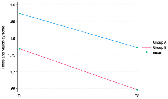 Figure 6 displays the Roles and Maudsley Score at each evaluation time. The figure underlines the difference between the two groups, but, as outlined in