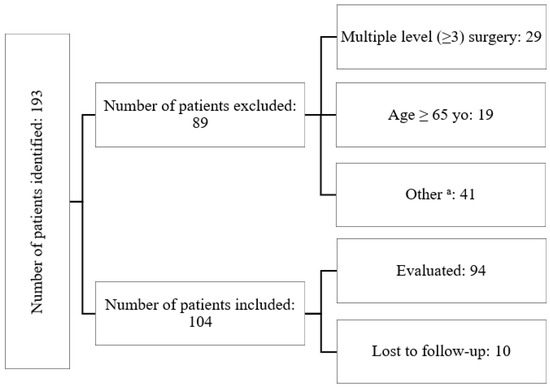 The chart introducing the patients flow throughout the study; a—the “other” group encompassed patients who had active rheumatologic/metabolic diseases or had previously undergone surgery at a different level.