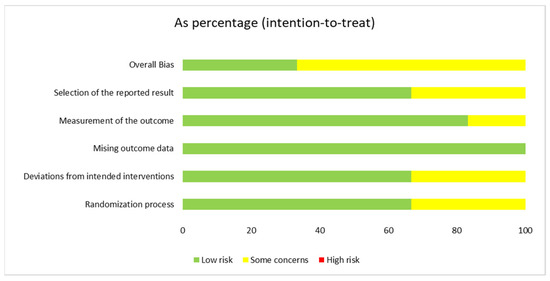 Most studies were at a low risk for all the domains of potential biases. However, two studies only reported limited information on the generation of the randomization sequence and allocation concealment [,]. The assessments of bias are summarized in Figure 2.