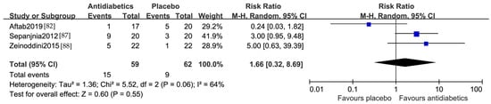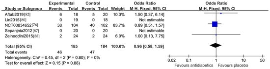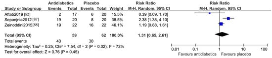 Forest plot of the response rate comparing antidiabetics vs. placebo [,,].