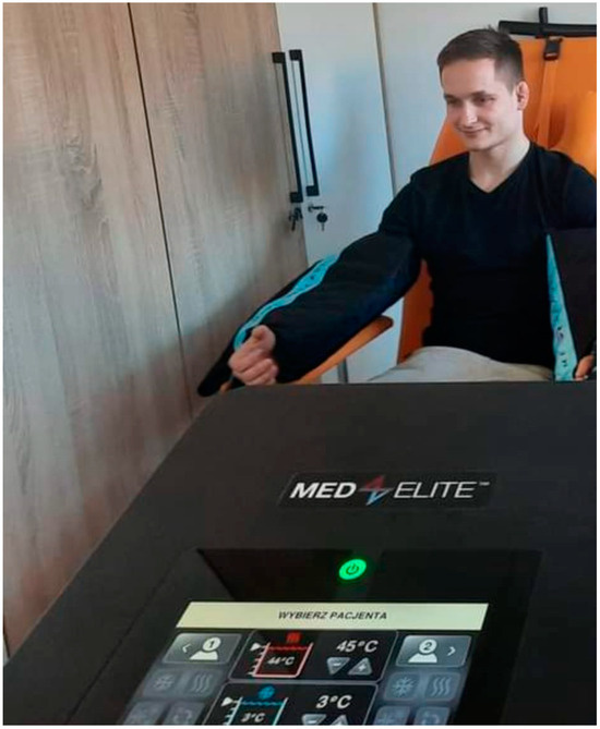 As cryotherapy has grown in popularity, clinicians, practitioners, and athletes have sought easy-to-use, quick-to-use, and portable alternatives to cryotherapy. An example of such a therapy is Game Ready, which can be used as local cryotherapy or contrast therapy [23,24]. Game Ready cryo-compression combines the use of a cold stimulus that is applied to a specific tissue in the form of a compression cuff with alternating pressure. We can use a pressure of 15 to 75 mmHg and a temperature of 3 to 45 °C. The procedure duration varies from 10 to 30 min [24,25].