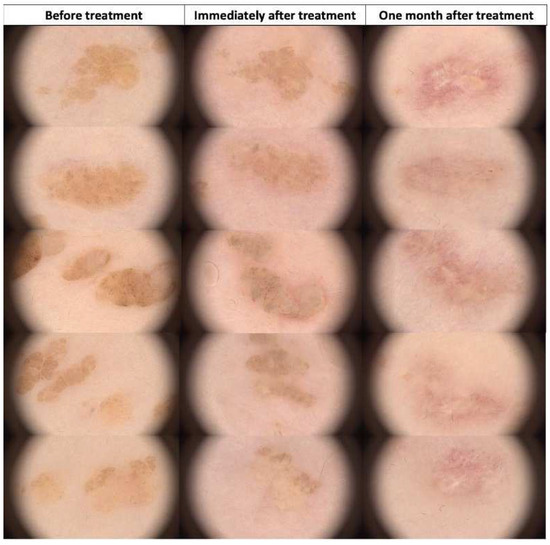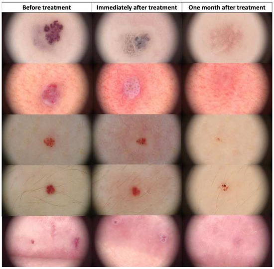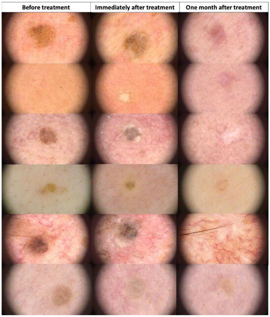 Informed consent was obtained from all participants, and this study adhered to the ethical principles outlined in the Helsinki Declaration II. Patient follow-up included dermoscopic examinations one month post treatment.