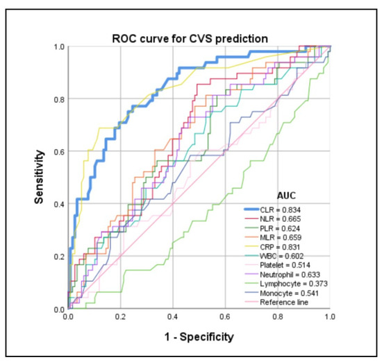 Comparison of the predictive value of different admission serum biomarkers associated with CVS.