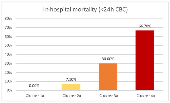 In-hospital mortality across clusters (<24 h CBC subanalysis).