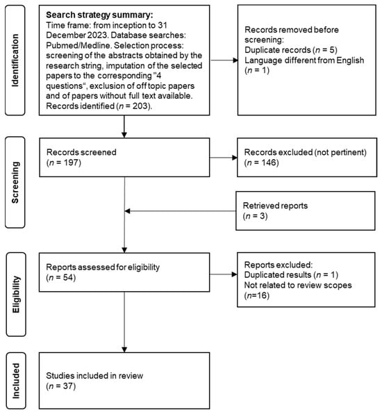 The search was performed using PubMed/MEDLINE databases with relevant keywords on the topics. We selected peer-reviewed articles published from inception to 31 December 2023. Papers written in languages other than English, not pertinent to the present review or whose full text was not available were excluded. The complete search string incorporated inclusive keywords on VA (e.g., “vascular ageing”, “vascular aging”, “vascular senescence”), arterial stiffness (e.g., “arterial stiffness”, “arterial compliance”, “pulse wave velocity”, “PWV”, “augmentation index”, “AIx”, “central blood pressure”, “pulse pressure”), subclinical atherosclerosis (“carotid intima-media thickness”), ED (“flow mediated dilation”) and inclusive keywords on AF (“atrial fibrillation”, “paroxysmal atrial fibrillation”, “persistent atrial fibrillation”). The pertinent papers were evaluated and eventually included in the final manuscript. We considered all papers in open-access and non-open-access journals. A flow chart of the review process, the search strategy summary and the checklist for the narrative review are provided in Figure 1 and Table S1 (Supplementary Materials).