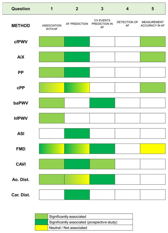 With all these premises, a network of scientists and clinicians from the COST Action VascAgeNet (CA18216) [19] identified a list of five clinical and practical key questions regarding the relationship between VA biomarkers and AF and critically reviewed the literature, with a special focus on studies using PWV and ED measures as reference methods for the evaluation of structural and functional arterial properties, in order to find potential answers. The list of question is the following: