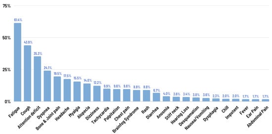- Kamal, M.; Abo Omirah, M.; Hussein, A.; Saeed, H. Assessment and characterisation of post-COVID-19 manifestations. Int. J. Clin. Pract. 2021, 75, e13746. [Google Scholar] [CrossRef]