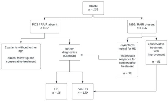 Clear guidelines for the qualification of patients for RSB are still missing. Therefore, we conducted a retrospective evaluation of a group of patients suspected of having HD, who underwent CE and HR-ARM examinations. The aim of our study was to assess whether HR-ARM is a sufficient screening tool for qualifying patients suspected of having HD for RSB.