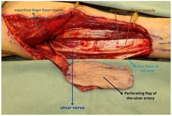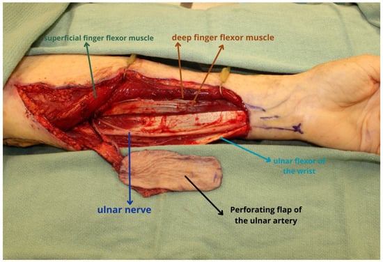 - Ishiko, M.; Yano, K.; Onode, E.; Takamatsu, K. Identification of Ulnar Artery Perforators Using Color Doppler Ultrasonography. J. Reconstr. Microsurg. 2020, 36, 667–672. [Google Scholar] [CrossRef] [PubMed]