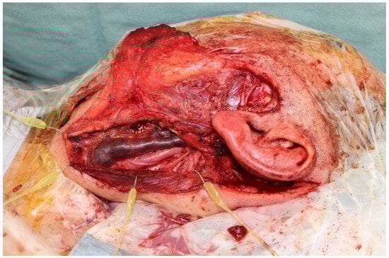 - Maricevich, M.; Lin, L.O.; Liu, J.; Chang, E.I.; Hanasono, M.M. Interposition Vein Grafting in Head and Neck Free Flap Reconstruction. Plast. Reconstr. Surg. 2018, 142, 1025–1034. [Google Scholar] [CrossRef] [PubMed]
