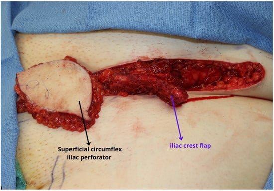 - Green, R.; Rahman, K.M.; Owen, S.; Paleri, V.; Adams, J.; Ahmed, O.A.; Ragbir, M. The superficial circumflex iliac artery perforator flap in intra-oral reconstruction. J. Plast. Reconstr. Aesthet. Surg. 2013, 66, 1683–1687. [Google Scholar] [CrossRef] [PubMed]