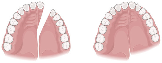 - Tortora, C.; Meazzini, M.C.; Garattini, G.; Brusati, R. Prevalence of Abnormalities in Dental Structure, Position, and Eruption Pattern in a Population of Unilateral and Bilateral Cleft Lip and Palate Patients. Cleft Palate-Craniofacial J. 2008, 45, 154–162. [Google Scholar] [CrossRef] [PubMed]