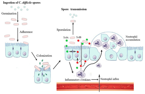 - Theriot, C.M.; Young, V.B. Interactions Between the Gastrointestinal Microbiome and Clostridium difficile. Annu. Rev. Microbiol. 2015, 69, 445–461. [Google Scholar] [CrossRef]