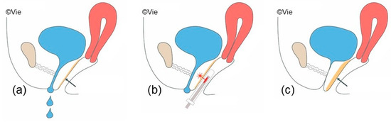 - Naumann, G.; Aigmuller, T.; Bader, W.; Bauer, R.; Beilecke, K.; Betschart Meier, C.; Bruer, G.; Bschleipfer, T.; Deniz, M.; Fink, T.; et al. Diagnosis and therapy of female urinary incontinence. Guideline of the DGGG, OEGGG and SGGG (S2k level, AWMF registry No. 015/091, January 2022): Part 2 with recommendations on interventional/surgical therapy of overactive bladder, surgical treatment of stress urinary incontinence and diagnosis and therapy of iatrogenic urogenital fistula. Geburtshilfe Frauenheilkd 2023, 83, 410–436. [Google Scholar]