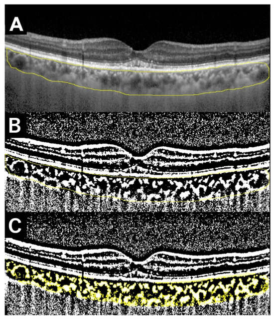 - Betzler, B.K.; Ding, J.; Wei, X.; Lee, J.M.; Grewal, D.S.; Fekrat, S.; Sadda, S.R.; Zarbin, M.A.; Agarwal, A.; Gupta, V.; et al. Choroidal vascularity index: A step towards software as a medical device. Br. J. Ophthalmol. 2022, 106, 149–155. [Google Scholar] [CrossRef] [PubMed]
