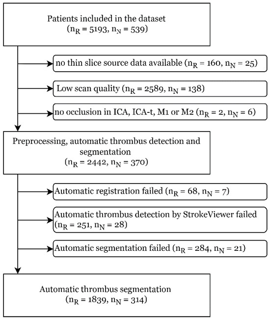 - Zhu, K.; Bala, F.; Zhang, J.; Benali, F.; Cimflova, P.; Kim, B.J.; McDonough, R.; Singh, N.; Hill, M.D.; Goyal, M.; et al. Automated Segmentation of Intracranial Thrombus on NCCT and CTA in Patients with Acute Ischemic Stroke Using a Coarse-to-Fine Deep Learning Model. Am. J. Neuroradiol. 2023, 44, 641–648. [Google Scholar] [CrossRef]