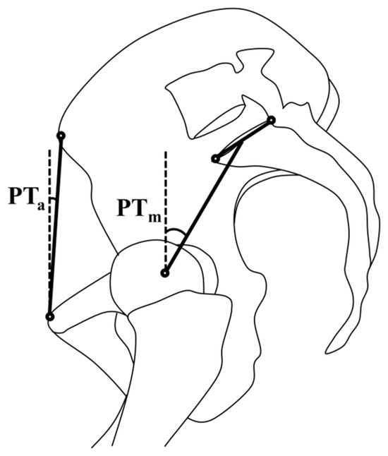 The anatomical definition (PTa) and mechanical definition (PTm) of pelvic tilt angles on sagittal pelvic radiographs.