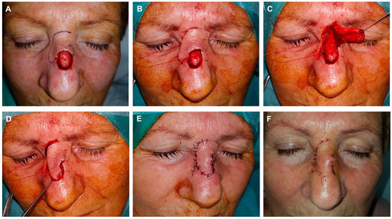 - Jackson, I.T. Nose Reconstruction. In Local Flaps in Head and Neck Reconstruction, 2nd ed.; Jackson, I.T., Ed.; Quality Medical Publishing: St. Louis, MO, USA, 2007; pp. 101–240. [Google Scholar]
