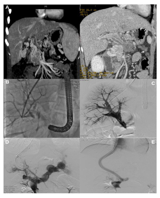 - Senzolo, M.; Tibbals, J.; Cholongitas, E.; Triantos, C.K.; Burroughs, A.K.; Patch, D. Transjugular intrahepatic portosystemic shunt for portal vein thrombosis with and without cavernous transformation. Aliment. Pharmacol. Ther. 2006, 23, 767–775. [Google Scholar] [CrossRef]