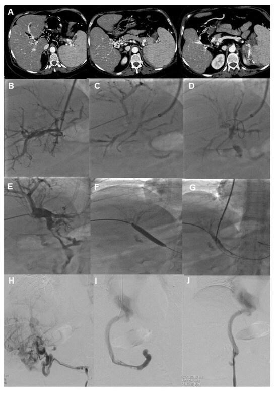 - Steffen, D.A.; Najafi, A.; Binkert, C.A. Safety of Percutaneous Transmesenteric and Transsplenic Access for Portosystemic Shunt Creation in Patients with Portal Vein Obstruction: Single-Center Experience and Review of Literature. Cardiovasc. Intervent. Radiol. 2023, 46, 1401–1406. [Google Scholar] [CrossRef]