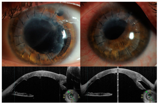 - Chaniyara, M.H.; Bafna, R.; Urkude, J.; Sharma, N. Rescuing the Host Descemet’s Membrane in Full-Thickness Traumatic Wound Dehiscence in Deep Anterior Lamellar Keratoplasty: Intraoperative Optical Coherence Tomography (IOCT)-Guided Technique. Case Rep. 2017, 2017, bcr-2017-221495. [Google Scholar] [CrossRef] [PubMed]